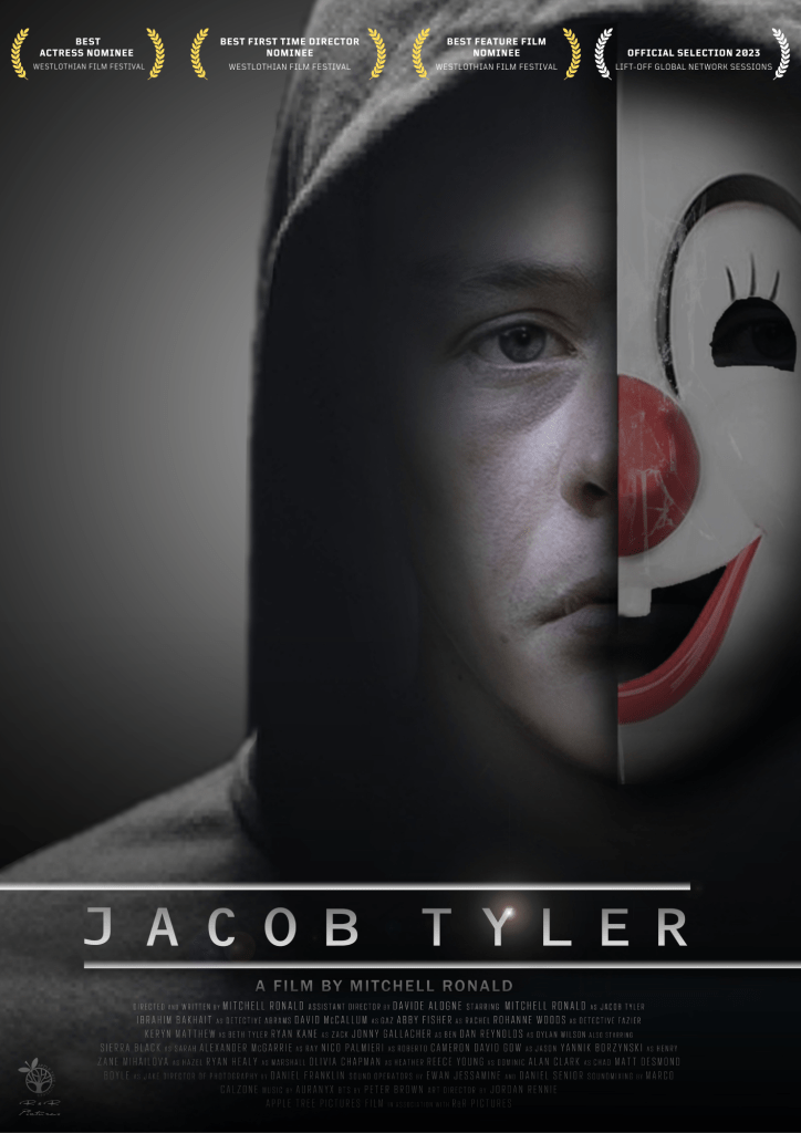 Directed and written by: Mitchell Ronald Assistant director by: Davide Alogne Starring : Mitchell Ronald as Jacob Tyler, Ibrahim Bakhait as Detective Abrams, David McCallum as Gaz, Abby Fisher as Rachel, Rohanne Woods as Detective Faizer, Daniel Reynolds as Dylan Wilson, Keryn Matthew as Beth Tyler, Ryan Kane as Zack, Jonny Gallacher as Ben.